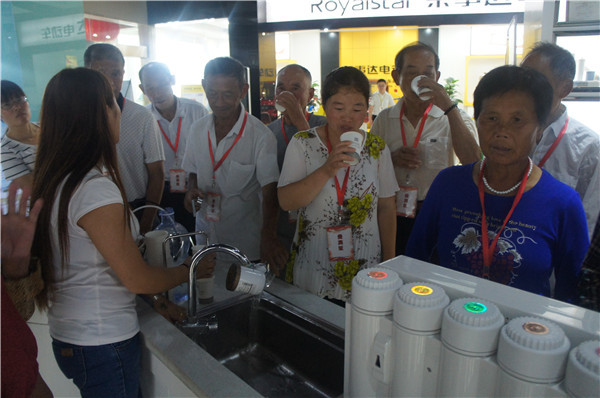 參觀中,安徽望江地區(qū)的李先生詢問(wèn)有沒(méi)有能過(guò)濾井水的產(chǎn)品,“我們家里沒(méi)通自來(lái)水,這些天連續(xù)大雨,家里井水犯渾,根本沒(méi)辦法喝?!惫ぷ魅藛T向其推薦了專門(mén)為農(nóng)村地區(qū)研發(fā)的自吸式純水機(jī),產(chǎn)品能有效克服水壓不足、不穩(wěn)問(wèn)題,采用先進(jìn)的反滲透技術(shù)和五級(jí)過(guò)濾系統(tǒng),能夠高效濾除水中雜質(zhì),去除水垢、水堿、農(nóng)藥、化肥、細(xì)菌、重金屬等有害物質(zhì)。在展廳,消費(fèi)者切身感受了產(chǎn)品使用效果,在飲用機(jī)器現(xiàn)制的水之后,紛紛稱贊產(chǎn)品功能強(qiáng)。