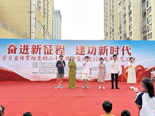 當(dāng)日正值中共安徽長豐(雙鳳)經(jīng)開區(qū)工作委員會、中共安徽(長豐)雙鳳經(jīng)濟(jì)開發(fā)區(qū)鳳巢社區(qū)總支部委員會舉辦學(xué)習(xí)宣傳貫徹黨的二十大精神暨建黨102周年文藝匯演,榮事達(dá)水工業(yè)公司黨支部受邀參加了此次活動。