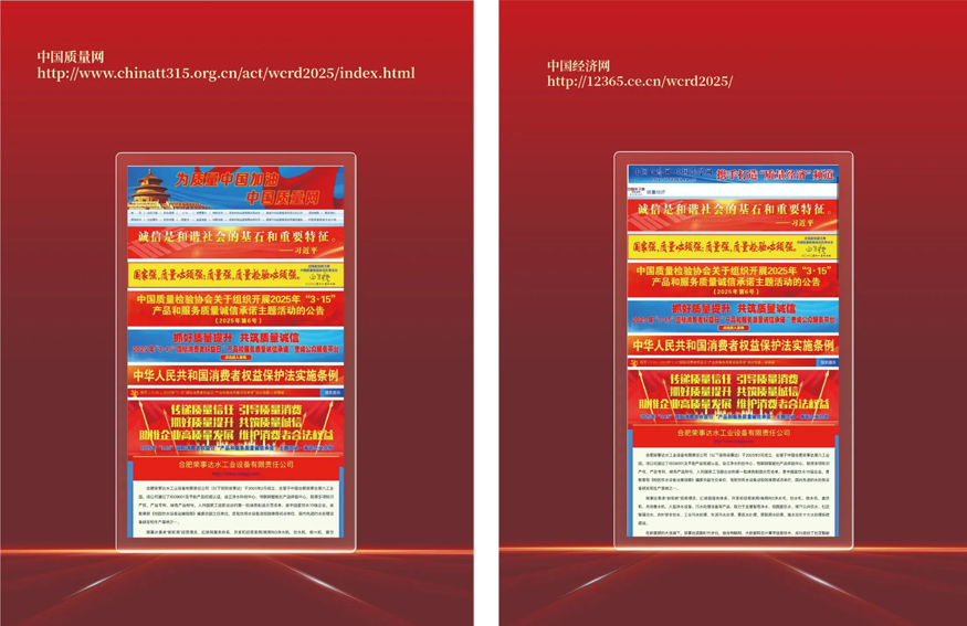在由中國質(zhì)量檢驗協(xié)會主辦的2025年“3.15”產(chǎn)品和服務(wù)質(zhì)量誠信承諾的主題活動中,榮事達水工業(yè)公司憑借卓越的產(chǎn)品品質(zhì)及良好的社會形象,獲得協(xié)會以及專家的一致認可,榮膺“全國行業(yè)質(zhì)量領(lǐng)先品牌” “全國產(chǎn)品和服務(wù)質(zhì)量誠信承諾企業(yè)” “全國消費者質(zhì)量信譽保障產(chǎn)品” “全國質(zhì)量檢驗穩(wěn)定合格產(chǎn)品”多項榮譽,并在中國質(zhì)量網(wǎng)、中國經(jīng)濟網(wǎng)、中國產(chǎn)品質(zhì)量信譽網(wǎng)等多家媒體上集中展示和公告。