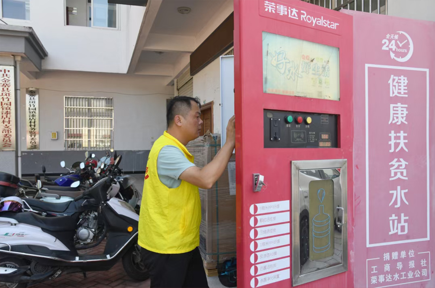 活動中,榮事達水工業(yè)黨支部發(fā)揮自身技術優(yōu)勢,組織專業(yè)維修團隊對此前捐贈給該村的凈水設備進行了全面檢修保養(yǎng),并免費更換了濾芯。這些凈水設備是榮事達水工業(yè)公司特別定制的產品,具備24小時自助供水功能,采用多級過濾凈化技術,能有效濾除水中的雜質、細菌、農藥、化肥及重金屬等有害物質,確保出水達到直飲標準。