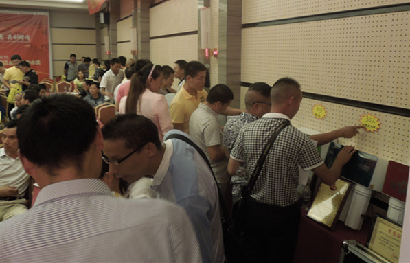 襄陽營銷管理中心自成立以來,已成功開發(fā)加盟商60多家,將榮事達做成了當?shù)貎羲a(chǎn)品第一品牌。榮事達凈水機憑借卓越的產(chǎn)品質(zhì)量和服務在襄陽擁有極高的品牌知名度,終端渠道網(wǎng)點遍布襄陽地區(qū)各縣城、鄉(xiāng)鎮(zhèn),產(chǎn)品銷量在當?shù)馗鞘浊恢浮O尻杻羲袌雠畈l(fā)展的盛況使得此次分銷會議除了有120多位當?shù)亟?jīng)銷商和意向客戶前來參加,還吸引了江西、貴州、河南、陜西等外省客戶慕名趕來觀摩、學習。
