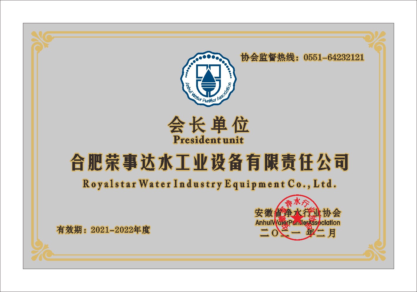 安徽省凈水行業(yè)協(xié)會(huì)會(huì)長(zhǎng)單位... -
