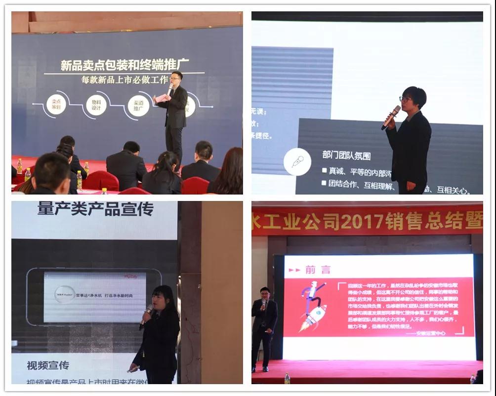榮事達(dá)水工業(yè)公司總經(jīng)理王悅生作大會(huì)開場(chǎng)致辭。王總回顧了公司在2017年取得的傲人成果與輝煌業(yè)績(jī),提出2018年戰(zhàn)略發(fā)展規(guī)劃和目標(biāo),并要求圍繞新目標(biāo),開好局,起好步,以實(shí)際行動(dòng)落實(shí)新規(guī)劃,謀求新發(fā)展,創(chuàng)造新輝煌。
