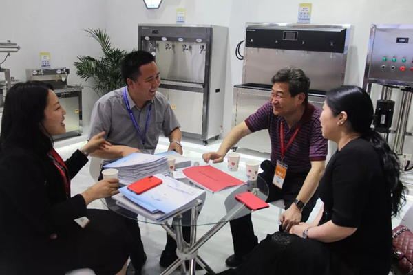 在主講區(qū),講解員小蔡就企業(yè)最新研發(fā)成果向記者做了詳細(xì)的介紹。他表示,信息網(wǎng)絡(luò)化的發(fā)展,使越來越多校園步入了“互聯(lián)網(wǎng)+”時代,而榮事達(dá)亦應(yīng)走在前列。比如,此次展會首次亮相的榮事達(dá)物聯(lián)網(wǎng)智能直飲機(jī),就實現(xiàn)了校園直飲水的物聯(lián)網(wǎng)嫁接,微信小程序后臺管理,微信、支付寶掃碼支付等等,讓校園師生取水更加方便。除此之外,在前幾個月召開的教育部《學(xué)校直飲水設(shè)備運維模式適用性研究》項目討論會上,榮事達(dá)開發(fā)的“校園直飲水智慧管理系統(tǒng)”以創(chuàng)新獨特的云端運維管理,也得到與會領(lǐng)導(dǎo)和行業(yè)專家的一致肯定。