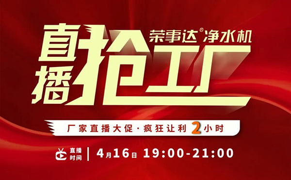 瞄準(zhǔn)網(wǎng)絡(luò)化營銷聚變新格局,榮事達(dá)水工業(yè)集團(tuán)以創(chuàng)新思維持續(xù)引領(lǐng)凈水銷售模式升級,借力現(xiàn)場感與代入感超強的新媒體直播平臺,貫通線上線下渠道,助力經(jīng)銷商快速銷售。4月16日,榮事達(dá)2020年硬核大動作——“榮事達(dá)凈水機?直播搶工廠”網(wǎng)絡(luò)直播營銷活動強勢落地,贏戰(zhàn)市場!