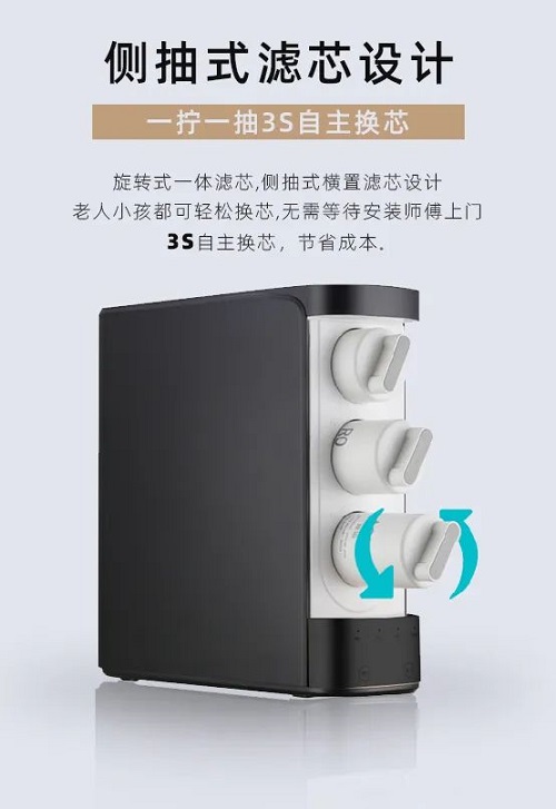 科技讓生活更美好。榮事達(dá)智能反滲透純水機(jī)利用科技之力實(shí)現(xiàn)產(chǎn)品創(chuàng)新,讓更多人都能享受科技帶來的美好生活,側(cè)抽式濾芯設(shè)計,一擰一抽3秒自主換芯,真正體現(xiàn)了將細(xì)節(jié)做到極致。