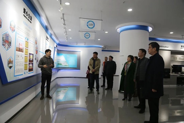 領(lǐng)導(dǎo)一行深入榮事達(dá)智慧水世界展廳,聽取了講解員對榮事達(dá)水工業(yè)發(fā)展歷程、榮譽(yù)成就、公益行動及黨建引領(lǐng)的全面介紹。