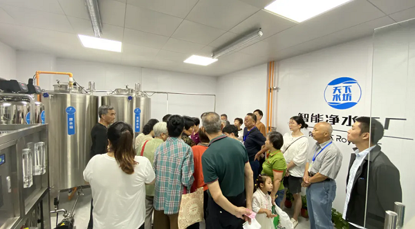 工作人員向居民詳細介紹了智能凈水工廠的工藝流程、技術優(yōu)勢以及后期的維護管理等。居民在見證了榮事達智能凈水工廠的整體規(guī)模實力后,對凈水工廠的水質(zhì)安全十分安心,表示今后家庭飲水就喝榮事達智能凈水工廠的直飲水。