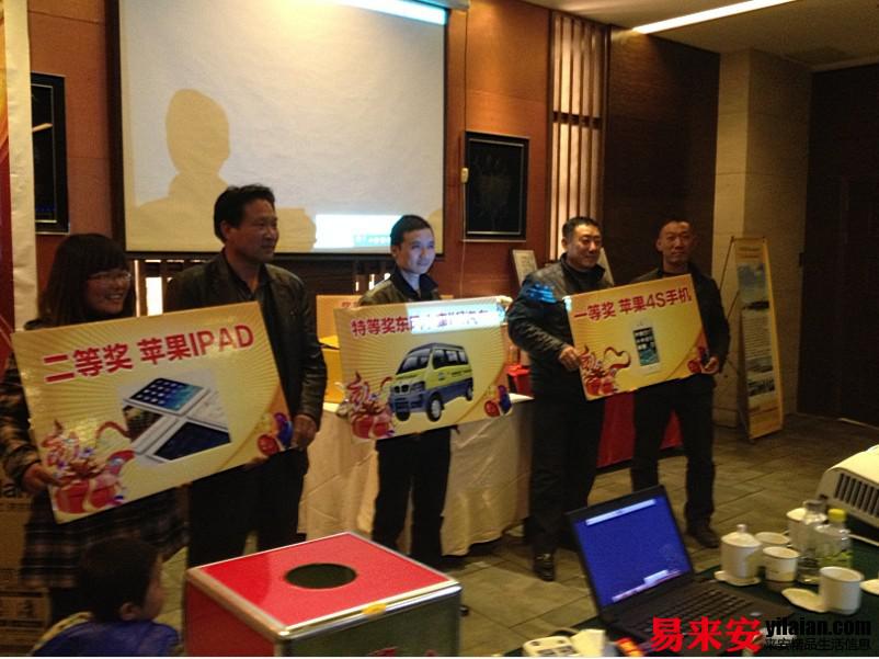 會(huì)議還安排了訂貨抽獎(jiǎng)環(huán)節(jié),東風(fēng)汽車、iphone4s、ipad、格蘭仕滾筒洗衣機(jī)等豐厚的獎(jiǎng)品激發(fā)了與會(huì)經(jīng)銷商的訂貨熱情。一位來(lái)自天長(zhǎng)的新客戶場(chǎng)訂貨達(dá)37萬(wàn) ,幸運(yùn)抽中汽車大獎(jiǎng)。