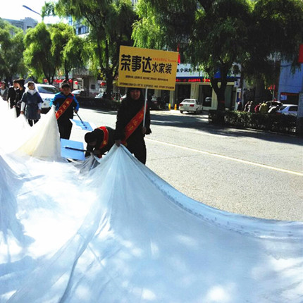 十一黃金周,國慶變“家”節(jié),新人扎堆結(jié)婚,在這普天同慶的日子里,身著百米紗裙的新娘幸福地挽著新郎,走遍東寧縣城。榮事達與其他品牌的工作人員一起托起新娘的紗裙,致力于用自己卓越的產(chǎn)品品質(zhì)托起新人幸福的生活,陪伴新人走向幸福之路。此次活動在東寧縣城引起很大反響,許多新房業(yè)主到當?shù)貙Yu店咨詢水家裝方案,七成消費者當場即選購產(chǎn)品,準備為新家安裝凈水設(shè)備。