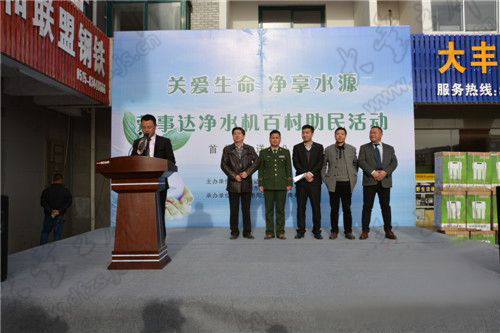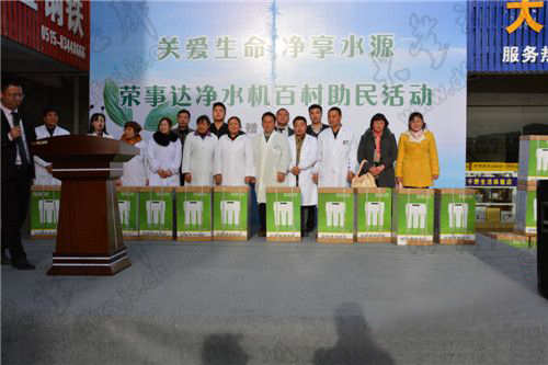 4月17日下午,“關(guān)愛生命 凈享水源”榮事達凈水機百村助民活動捐贈儀式順利舉行,榮事達水工業(yè)公司聯(lián)合當(dāng)?shù)亟?jīng)銷商向江蘇省大豐市各村鎮(zhèn)衛(wèi)生院、工商、公安、消防等部門首批捐贈凈水機300臺。