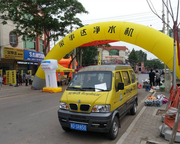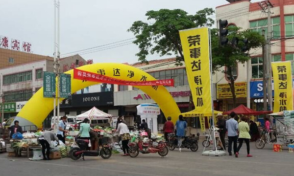 開業(yè)當天,店門口擺放巨大的氣拱門,布滿道旗,再加上榮事達凈水機服務車的來回宣傳,吸引了眾多消費者駐足并進店咨詢,店里專業(yè)導購人員為前來咨詢的消費者做了詳細的講解和介紹。為了讓更多的人了解凈水的重要性,代理商更是當場演示凈水機的工作過程,普及凈水知識。