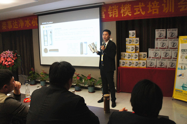 為應(yīng)對2016凈水市場快速發(fā)展的要求,榮事達(dá)精心推出R8櫥下智能純水機(jī)、箱體LED純水機(jī)、速熱飲水機(jī)等多款新品,適應(yīng)細(xì)分市場需求,助力終端網(wǎng)點提高市場占有率。在隨后的新品培訓(xùn)環(huán)節(jié),榮事達(dá)渠道開發(fā)部王部長和董部長對新品功能特點、市場定位進(jìn)行了詳細(xì)講解。新款純水機(jī)配備RO反滲透技術(shù)及五級過濾系統(tǒng),融智能顯示、自動化沖洗、防漏水設(shè)計于一體,并為用戶提供了櫥上、櫥下安置的不同選擇;新款飲水機(jī)采用厚膜加熱管原理,三秒即熱,并可實現(xiàn)多檔水溫水量調(diào)節(jié),使得家庭飲水更方便。新品踐行了榮事達(dá)產(chǎn)品定制的研發(fā)理念,類型多樣,既包含了可攻克農(nóng)村地區(qū)水壓不足不穩(wěn)狀況的自吸增壓凈水機(jī),也囊括了滿足城市居民追求健康時尚消費需求的高端機(jī)型,參會客戶通過了解,紛紛表示定制新品市場定位準(zhǔn)確,前景極為廣闊。