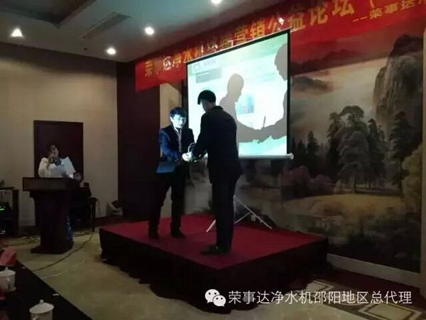 特殊教育學(xué)校負(fù)責(zé)人現(xiàn)場接受了捐贈(zèng),同時(shí),在榮事達(dá)凈水機(jī)邵陽所有經(jīng)銷商的見證下,榮事達(dá)西南西北地區(qū)總監(jiān)孫長華為邵陽管理中心頒發(fā)了“樂享凈水 愛心代理商”的獎(jiǎng)杯。