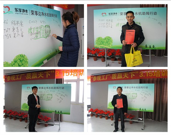 與會(huì)的許多意向客戶在一天半的觀摩、學(xué)習(xí)中,了解了榮事達(dá)水工業(yè)公司的過硬的軟、硬實(shí)力,見證了榮事達(dá)凈水機(jī)卓越的產(chǎn)品質(zhì)量和完善的售后保證,更感受了公司作為凈水名企的品牌信譽(yù)、行業(yè)地位、社會(huì)擔(dān)當(dāng)。會(huì)后,近九成意向客戶立即簽訂了合作協(xié)議,與榮事達(dá)攜手合作。為了酬謝廣大客戶,榮事達(dá)精心準(zhǔn)備了四輪抽獎(jiǎng)環(huán)節(jié),多款精美禮品悉數(shù)送出。其中,20多位合作客戶在終極大獎(jiǎng)環(huán)節(jié)幸運(yùn)抽得公司精心準(zhǔn)備的4套凈水設(shè)備,用于開展“樂享凈水”助殘行動(dòng)。