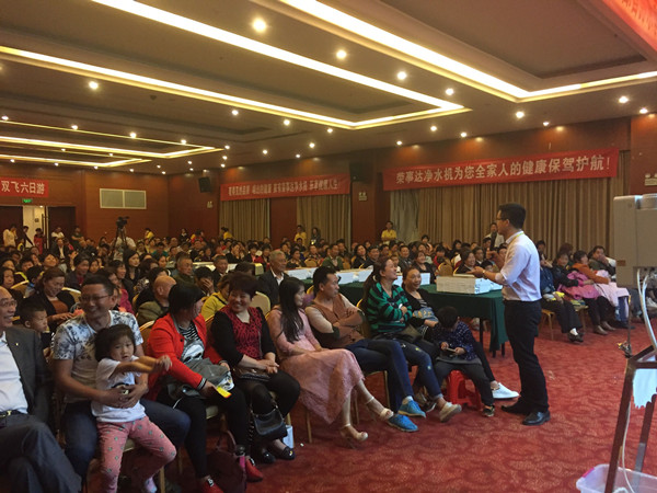 下午一點(diǎn),許多消費(fèi)者已早早到達(dá),近千人的會(huì)場內(nèi)熙熙攘攘、人頭攢動(dòng)?;顒?dòng)開始后,榮事達(dá)市場工作人員給參團(tuán)消費(fèi)者介紹了榮事達(dá)水工業(yè)公司的企業(yè)實(shí)力,展示了榮事達(dá)“中國直飲水10強(qiáng)企業(yè)”等多項(xiàng)榮譽(yù)資質(zhì),并著重講解了此次團(tuán)購會(huì)推出的純水機(jī)、一體機(jī)產(chǎn)品的功能、特點(diǎn)、參數(shù)。