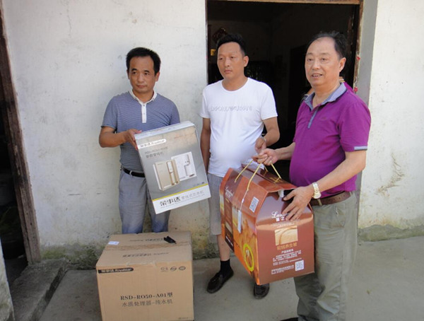 自今年6月下旬入汛以來,連續(xù)強(qiáng)降雨導(dǎo)致蕪湖縣內(nèi)各大圩區(qū)、河流等水位暴漲,多處被淹沒,人民生命財產(chǎn)安全受到極大的損失,生活條件尤為艱苦。活動當(dāng)天,榮事達(dá)愛心慰問團(tuán)隊來到各捐贈點(diǎn)現(xiàn)場安裝純水機(jī)和飲水機(jī),并詳細(xì)介紹了設(shè)備的工作原理和使用方法,讓群眾使用無后顧之憂,同時也帶來了駝絨被等日用物品,為災(zāi)民送去溫暖。