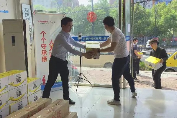 現(xiàn)場(chǎng),鳳霞社居委書(shū)記劉政鳳、鳳霞社居委吳偉主任對(duì)捐贈(zèng)物資進(jìn)行了接收存放。