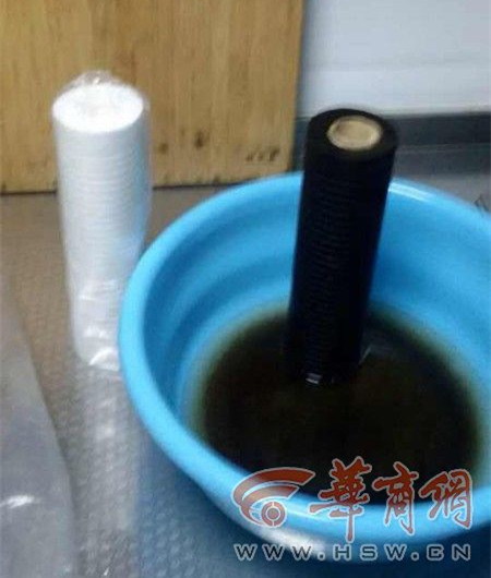 該小區(qū)多家住戶使用的是同一品牌的凈水器,該凈水器廠家一負責(zé)人解釋,凈水器都有前置濾芯和后置濾芯,一般都是建議6個月更換一次前置濾芯。“正常更換下來的顏色應(yīng)該是微微發(fā)黃或鐵銹紅。”該負責(zé)人說,但小楊家的前置濾芯更換下來卻是黑巧克力色,而且摸上去是油泥狀的物質(zhì)。